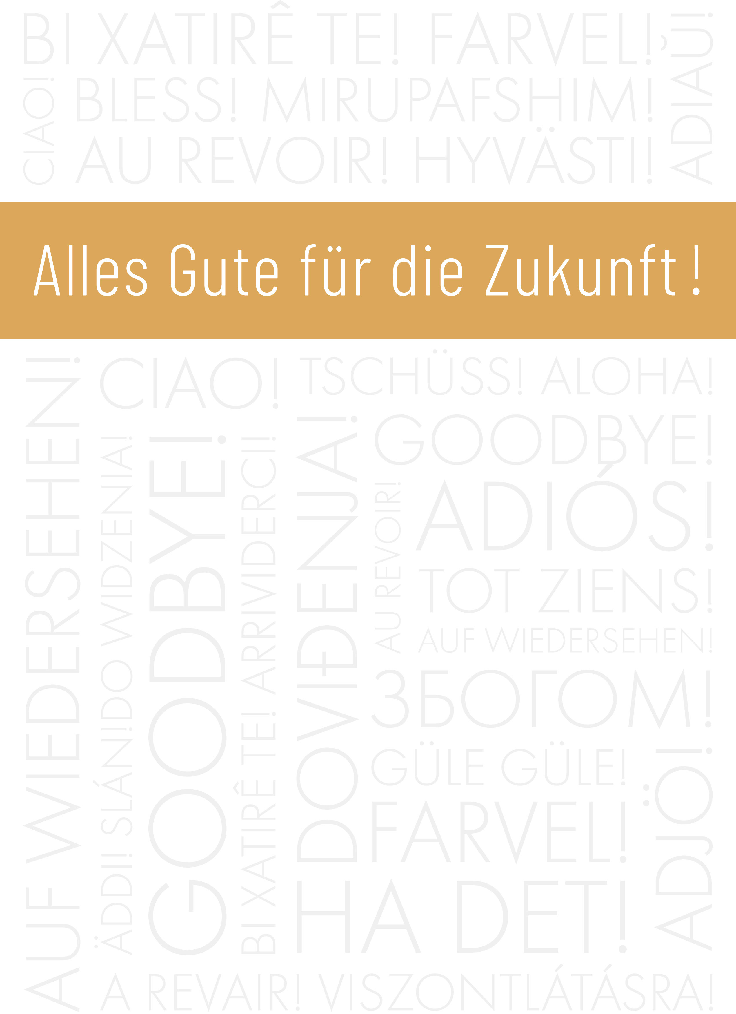 Ob Jobwechsel, Ruhestand oder ein neuer Lebensabschnitt – mit dieser geschmackvollen Abschiedskarte der Marke ABC verabschieden Sie sich stilvoll und mit Gefühl.