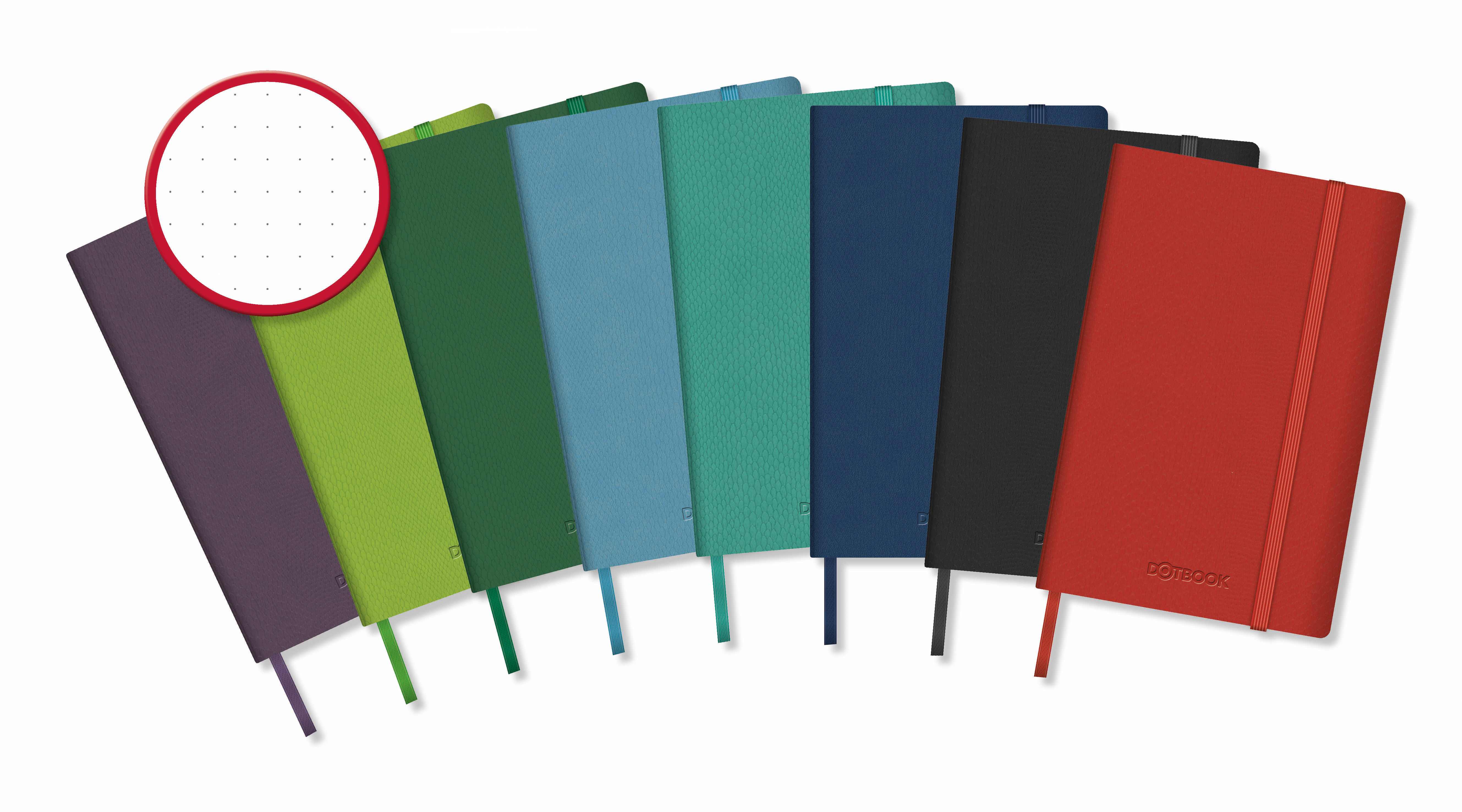 Dieses besondere Notizheft weist Blätter auf, deren Linierung aus kleinen Punkten besteht.
