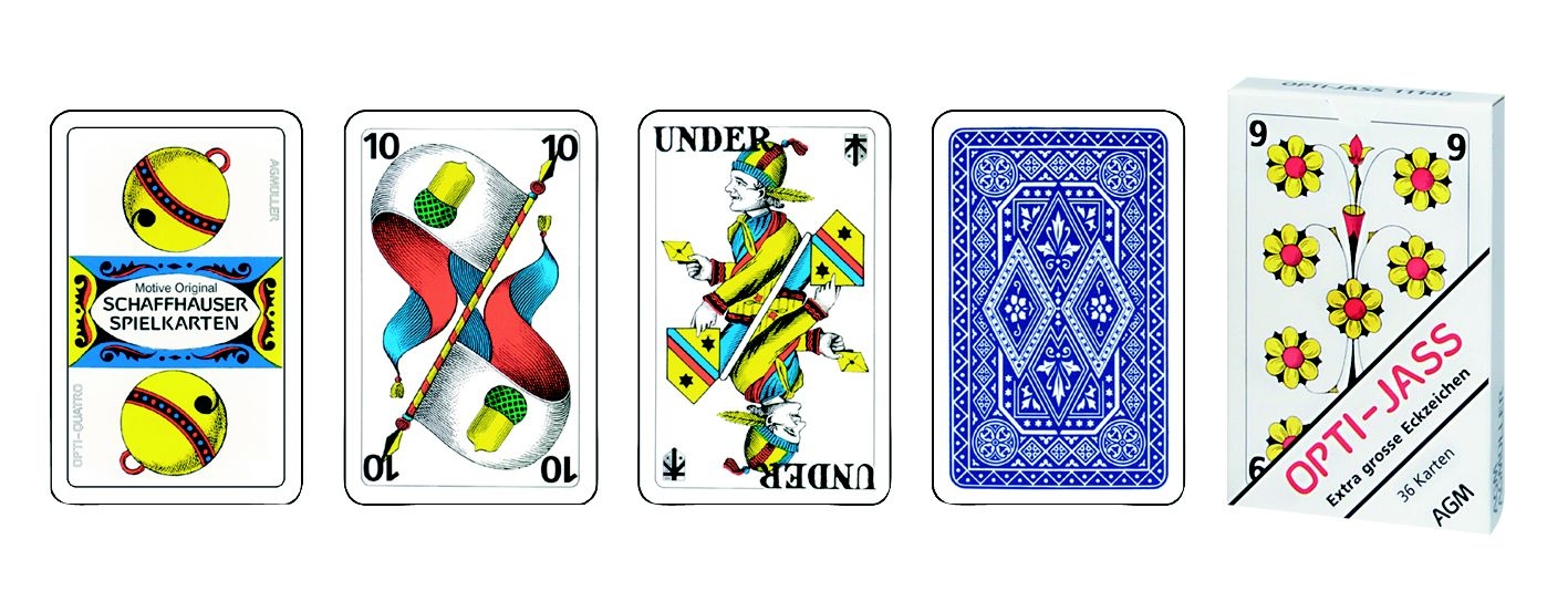 Produktinformationen "AGMÜLLER Jasskarten Opti 57x89mm 106801114 CH 36 Karten"