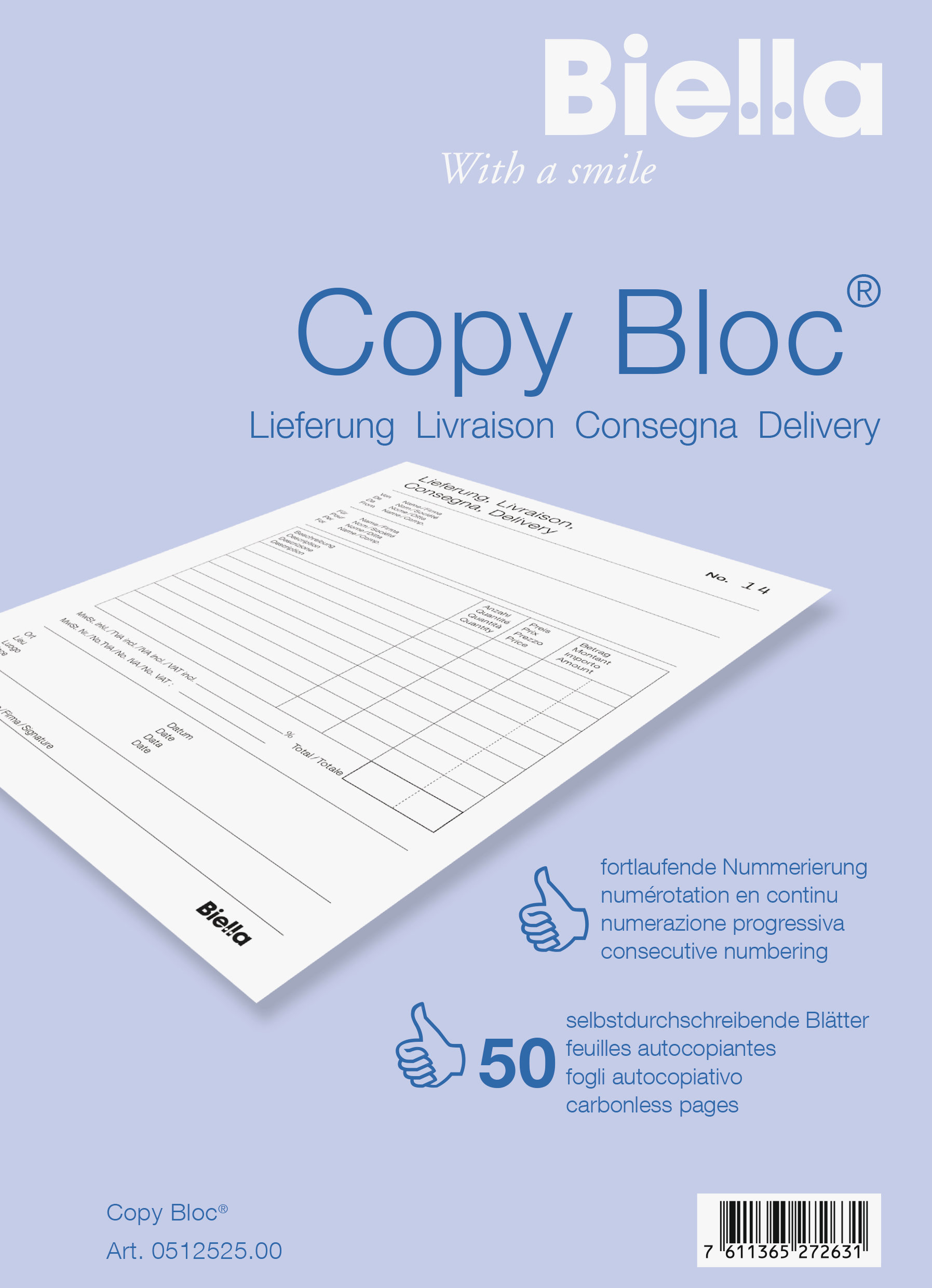 BIELLA Liefers. COPY-BLOC D/F/I/E A5 51252500U selbstdurchschreib. 50x2 Blatt