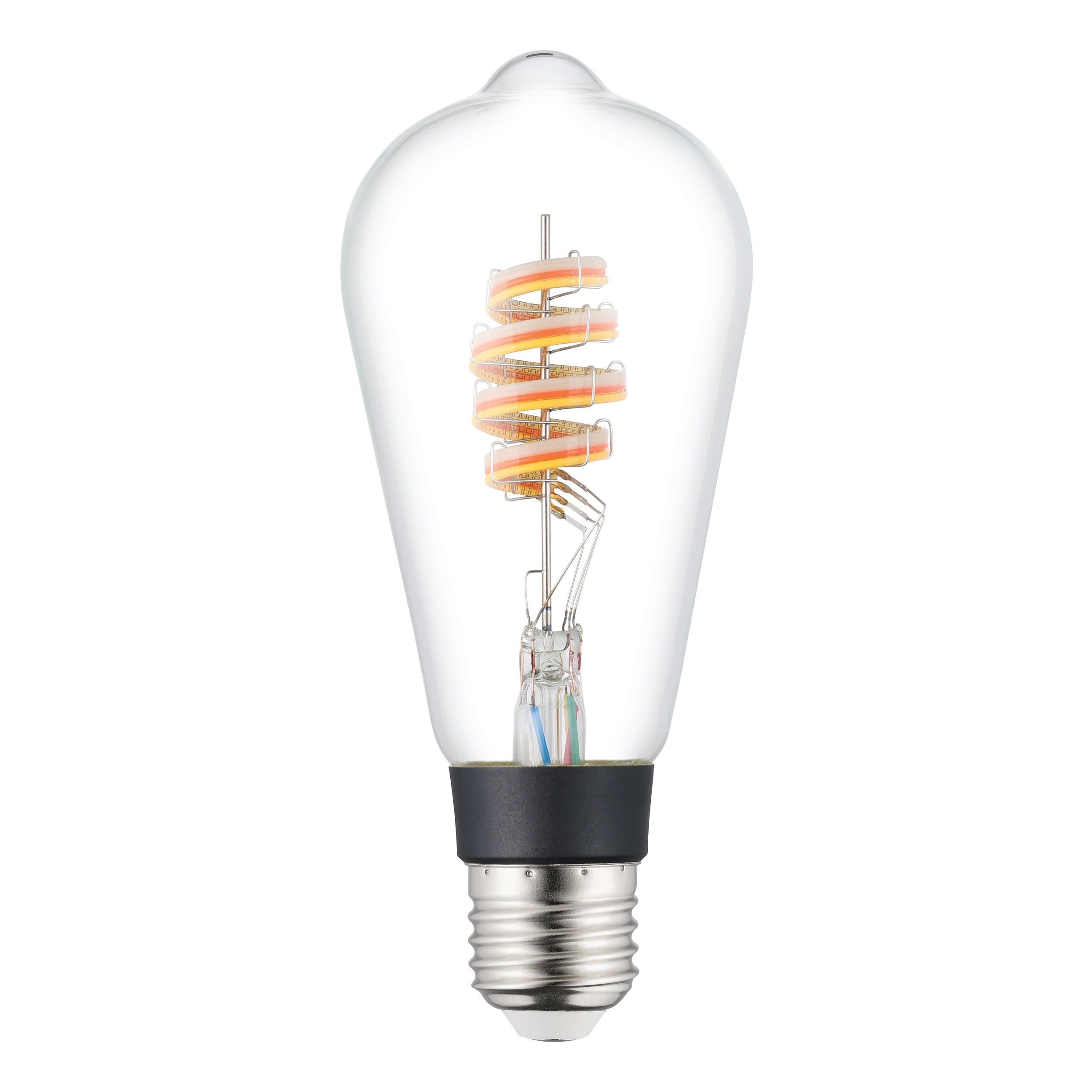 Das E27 LED Leuchtmittel (G64) aus dem Smart Home Sortiment connect.Z ist aus klarem Glas mit filamentförmigen LEDs gefertigt. Die LED-Glühbirne spendet angenehmes Licht ganz nach Ihren Wünschen. Sie haben die Wahl zwischen warmweissem, neutralweissem und kaltweissem Licht. Die Steuerung der Lampe erfolgt via kostenloser App (AwoX Home Control) und ermöglicht Ihnen den Zugriff auf weitere Komfortfunktionen wie Dimmen, Timer, Anwesenheitssimulation und vielen mehr. Die Ansteuerung des Leuchtmittels erfolgt über Bluetooth sowie ZigBee 3.0 und ermöglicht zudem die Steuerung über kompatible Sprachassistenten. Mit Hilfe einer separat erhältlichen Bridge ist es Ihnen möglich auch smarte ZigBee 3.0 Leuchten anderer Hersteller in das System zu integrieren (Bitte prüfen Sie hierzu die technische Anforderung des jeweiligen Produkts). Zusätzlich lässt sich das smarte Leuchtmittel auch über die separat erhältliche Fernbedienung steuern. Der Tausch Ihrer herkömmlichen Leuchtmittel durch EGLO connect.Z Leuchtmittel ermöglicht Ihnen nicht smarte Leuchten smart werden zu lassen und in das System einzubinden.