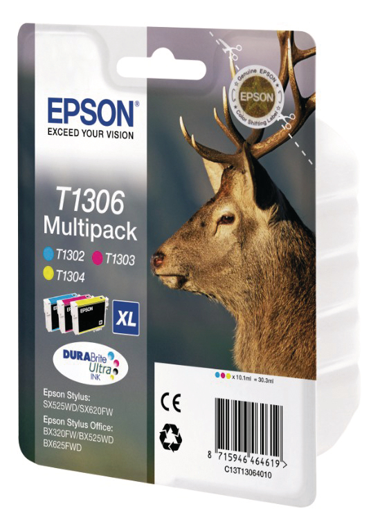 EPSON Multipack Tinte XL CMY T130640 Stylus SX525WD 3x10.1ml