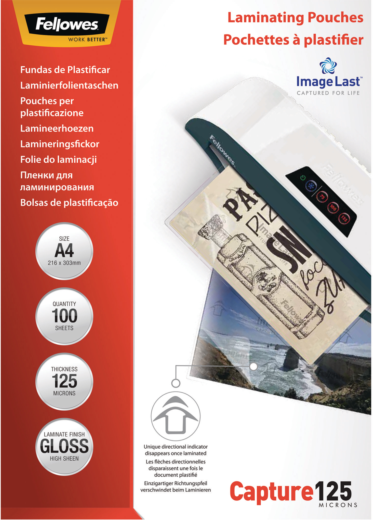 FELLOWES Laminiertasche 216x303mm 5307407 glanz, 125my 100 Stk
