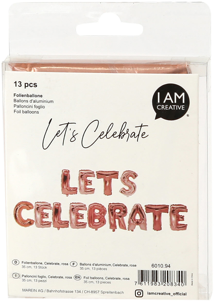 Ob Geburtstag, Hochzeit oder Neujahr, mit den Folienballons von I AM CREATIVE kann man passenden zum Thema jederzeit für die richtige Umgebung sorgen.Inhalt: 13x Folienballons (Let’s Celebrate), 2x Aufblashalme