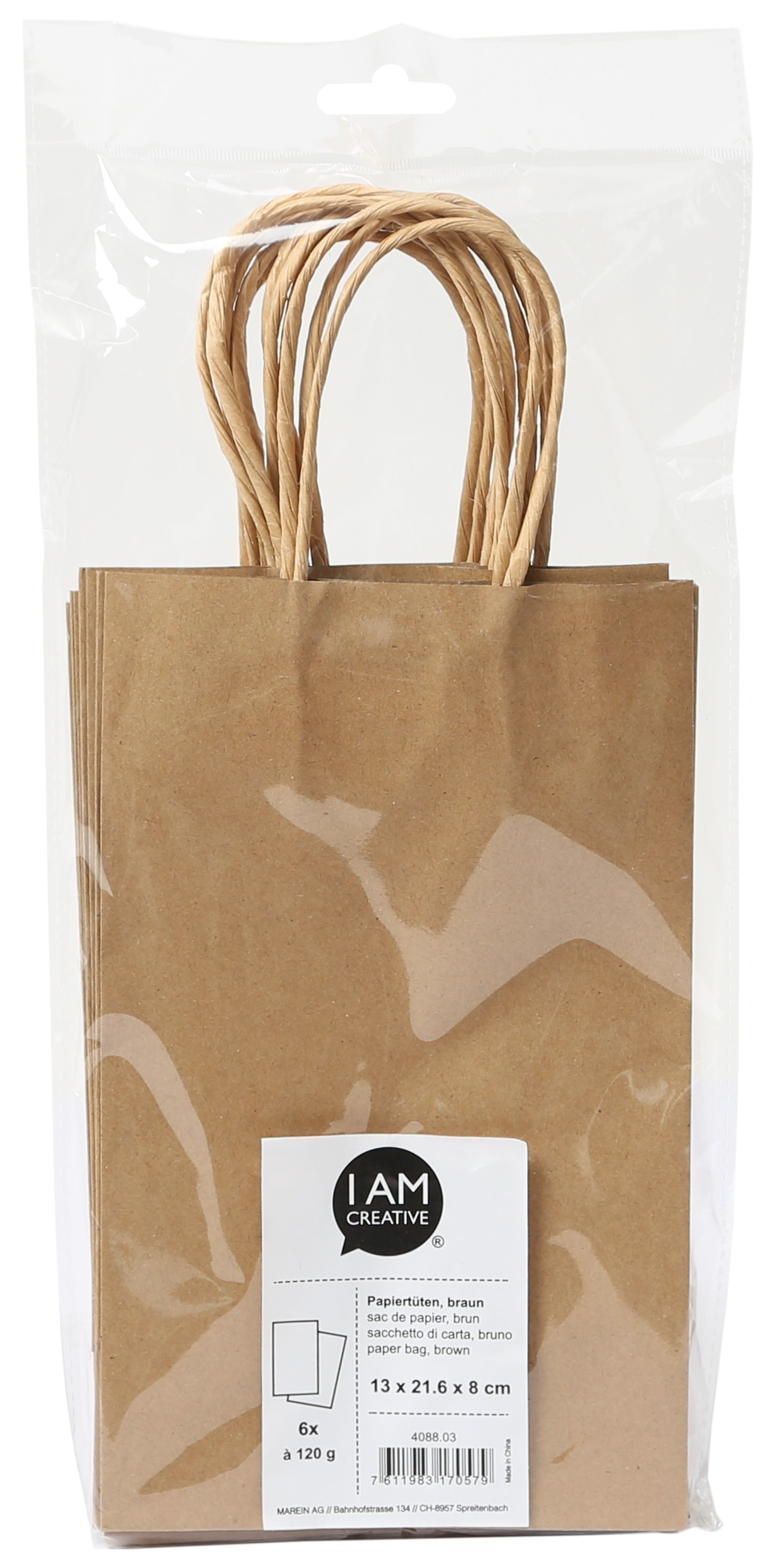 Produktinformationen "I AM CREATIVE Papiertüten 4088.03 13x21.6x8cm, 6 Stück"