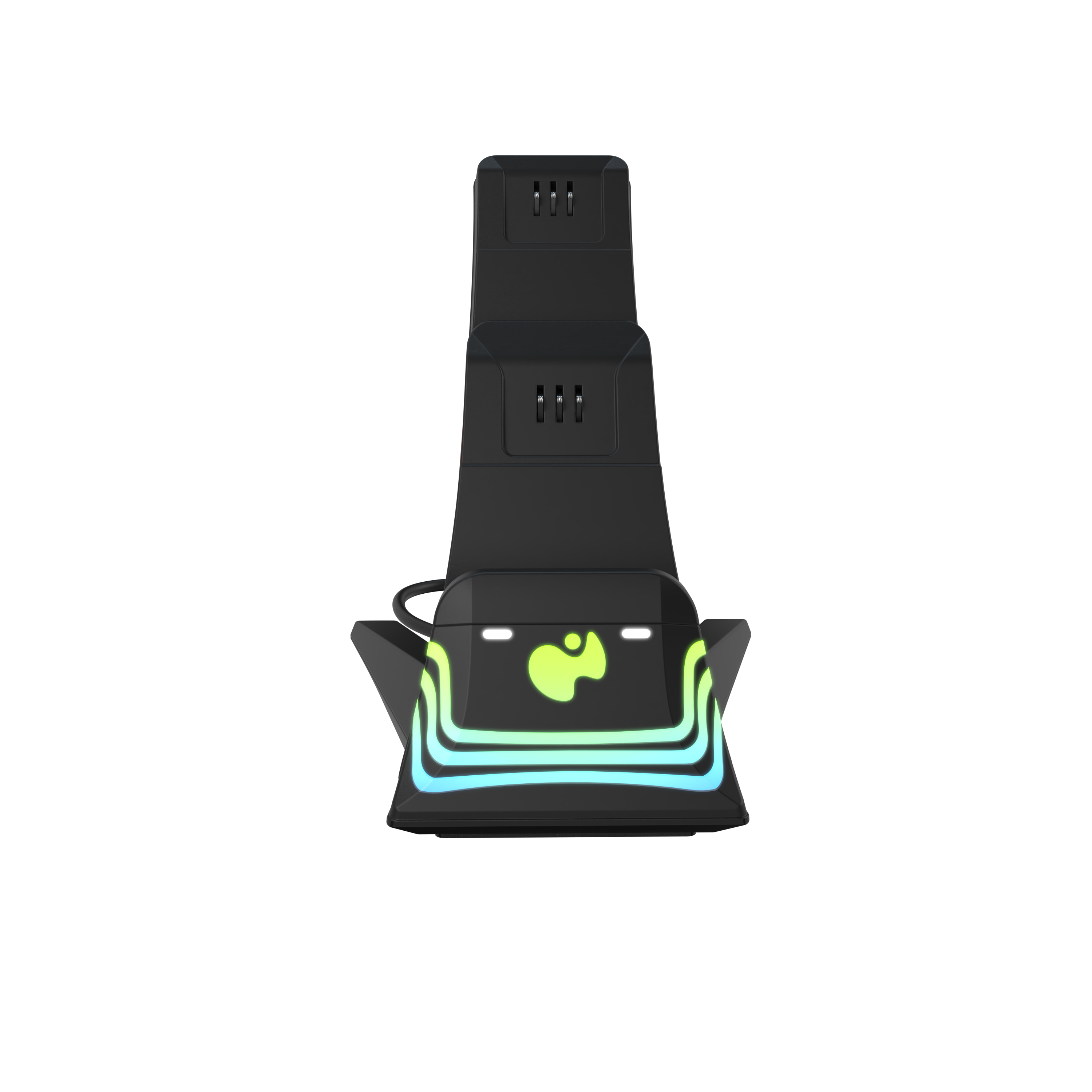 Schlage Wellen mit den leuchtenden Farben und Effekten des White Afterglow™ Wave Dual Charger für die Xbox. Dieses einzigartige Ladesystem verfügt über acht RGB-Zonen mit individuell gestaltbaren Optionen, mit denen du eine beeindruckende Präsentationsfläche für deine Xbox Wireless Controller schaffen kannst, während du sie auflädst. Mit der Profiltaste kannst du bis zu fünf Profile für Beleuchtungseffekte programmieren, die zu deiner Stimmung passen. Lade die kostenlose PDP Control Hub App herunter, um den Ladestatus zu überwachen, eigene Anzeigen und Profile zu erstellen, die Helligkeit einzustellen und vieles mehr. Verbinde dein Gerät einfach über den Bluetooth Sync Button, um auf die App zuzugreifen und Benachrichtigungen zu erhalten, wenn deine Controller aufgeladen und bereit sind, wieder in die Schlacht zu ziehen. Mit den LED-Ladeanzeigen an der Vorderseite des Ladegeräts kannst du ausserdem schnell den Ladestatus deines Controllers überprüfen. Installiere die 1100-mAh-Akkus und Klappen, um zwei Controller gleichzeitig in nur 3 Stunden aufzuladen, für bis zu 40 Stunden Spielzeit mit einer einzigen Ladung. Erlebe mit dem offiziell lizenzierten Afterglow Wave Dual Charger für Xbox eine ganz neue Art des Aufladens.