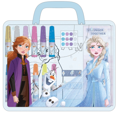 Das Malset Glitzerstudio im Frozen Look garantiert kreative Malstunden mit einer extra Portion Glitzer! Das Set beinhaltet 6 Glitzerkleber, 6 Fasermaler, Glitzer Stickerbogen, 12 Glitzersteine, 2 Glitzer Washi Tapes, 12 Ausmalvorlagen A5 für glitzernde Kunstwerke. Nach getaner Arbeit wird alles zurück in den Glitzer-Koffer gepackt und kann so auch mitgenommen werden. Das Glitzerstudio ist das perfekte Geschenk für alle Fans von Frozen wie auch alle Glitzer Liebhaber.