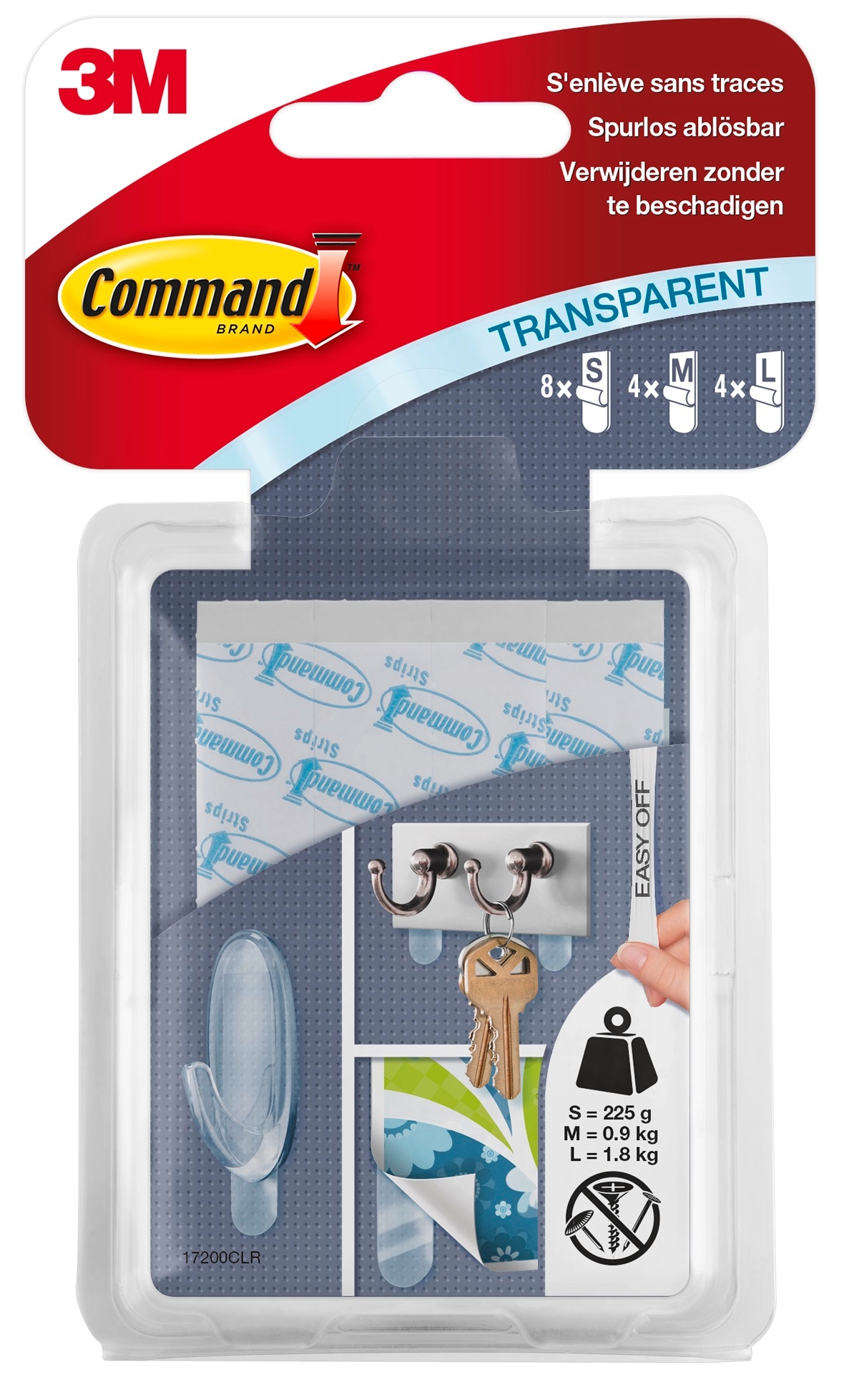 Mit den 16 transparenten Command™ Strips in 3 verschiedenen Grössen können Sie Ihre Command™ Haken oder Clips ganz einfach neu aufhängen – so oft Sie wollen und wo Sie wollen.