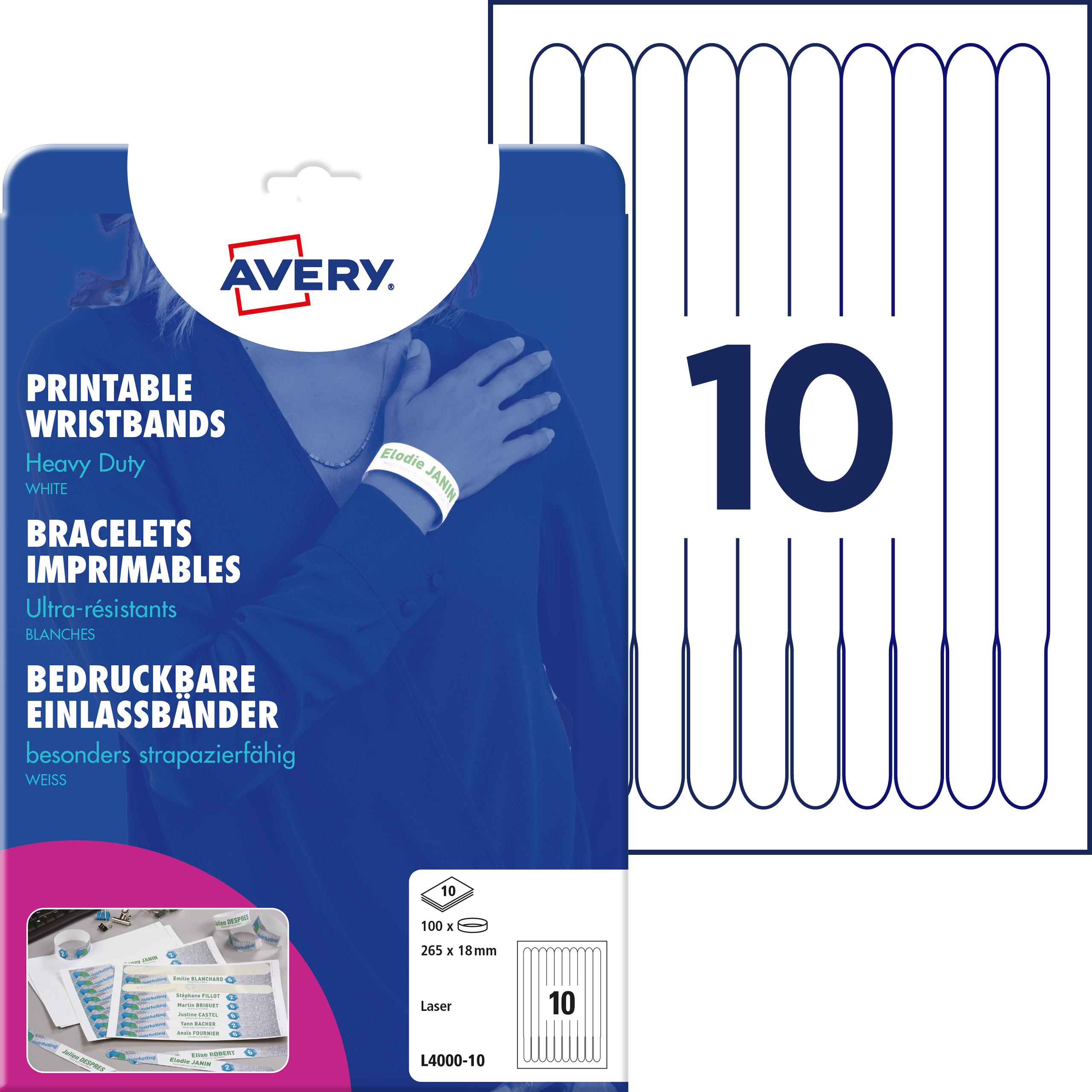 Die wasser- und reissfesten Einlassbänder im Format 265 x 18 mm von AVERY ZWECKFORM erleichtern Ihnen die Organisation von Veranstaltungen, Meetings, Seminaren und Konferenzen.
