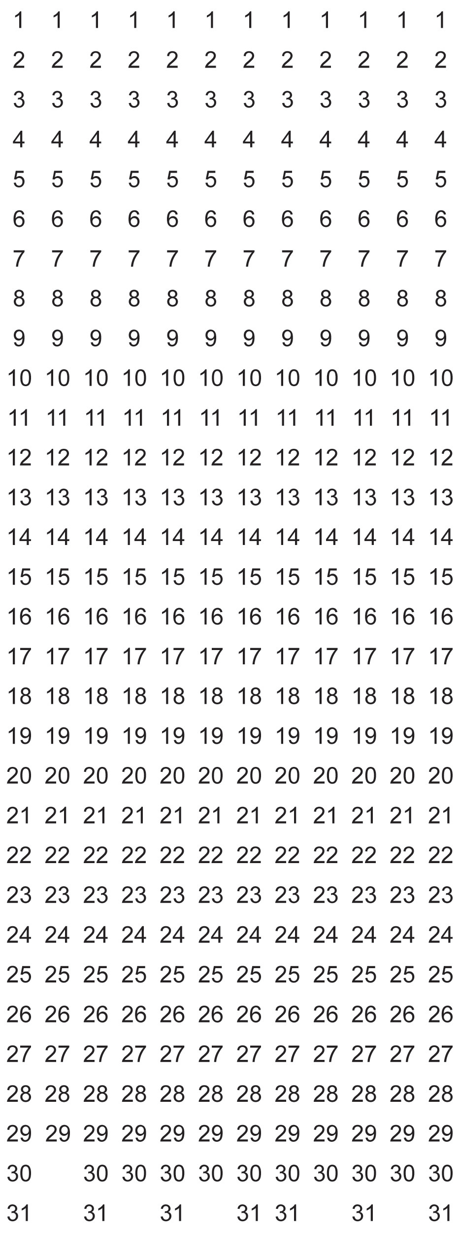 Produktinformationen "BEREC Datumsstreifen 1-31 DS 24 magnetisch vertikal 12 Stk."