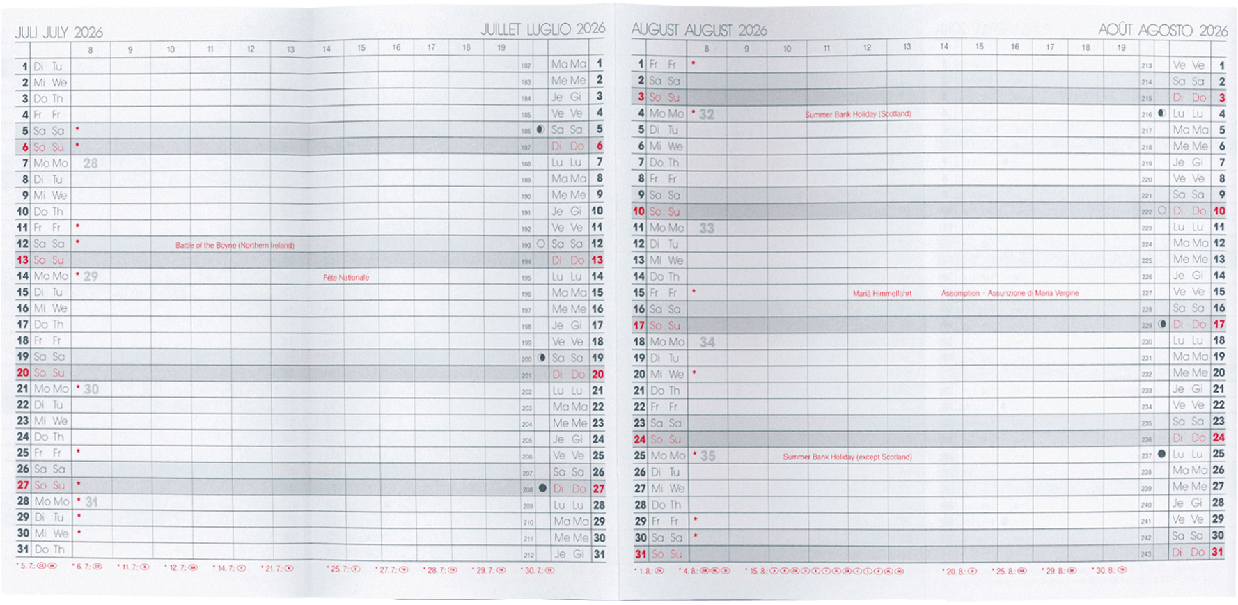BIELLA Planer Berlin 2026 853560000026U 6M/1S Ersatz ML 8.7x15.3cm