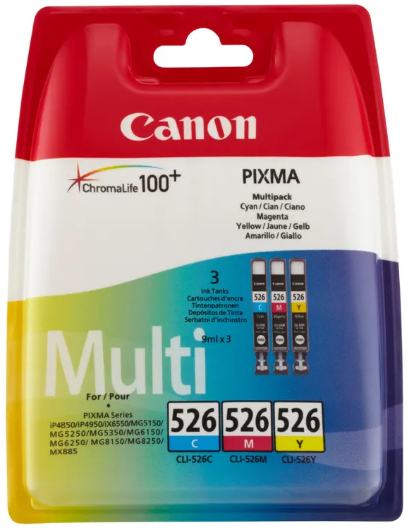 CANON Multipack Tinte CMY CLI-526PACK PIXMA iP 4850 3x9ml