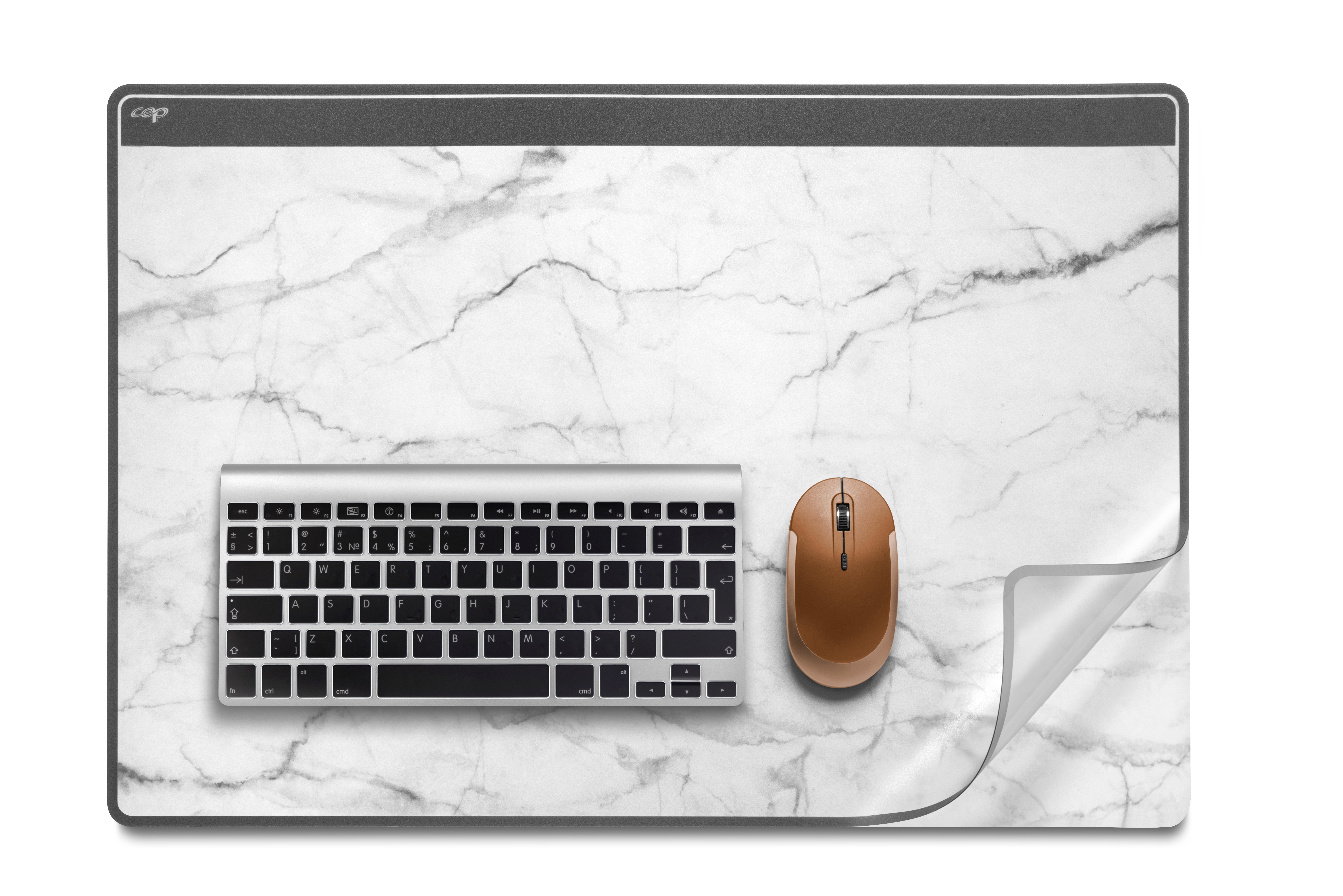Diese schöne Schreibunterlage in Marmor - Optik sorgt im Handumdrehen für Ordnung und Übersicht auf dem Schreibtisch. Die Unterlage ist mit einer extrem reflexarmen und transparenten PVC-Oberseite ausgestattet, wodurch Sie jederzeit freie Sicht auf die eingelegten Dokumente, Telefonnummer oder sonstige wichtige Notizen haben. Mit rutschfester Schaumstoff-Unterseite Für alle Mäuse geeignet Abwischbar mit Wasser + Seife Aus phthalatfreiem PVC Mit umweltfreundlichen, lösungsmittelfreien Druckfarben bedruckt, Greenguard Gold zertifiziert. Abmessungen: 585 x 385x 2 mm. Farben: Grau/Hellgrauer Marmor