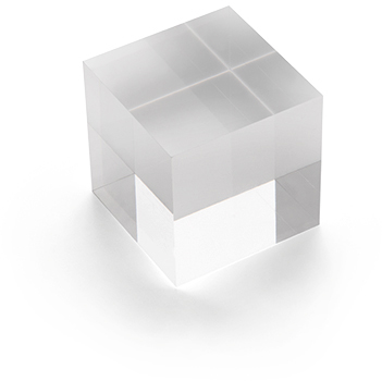 Kristallklarer, hochwertiger Acrylblock mit diamantpolierten Kanten. Ideal zur Warenpräsentation. Grösse: 50 x 50 x 50 mm.
