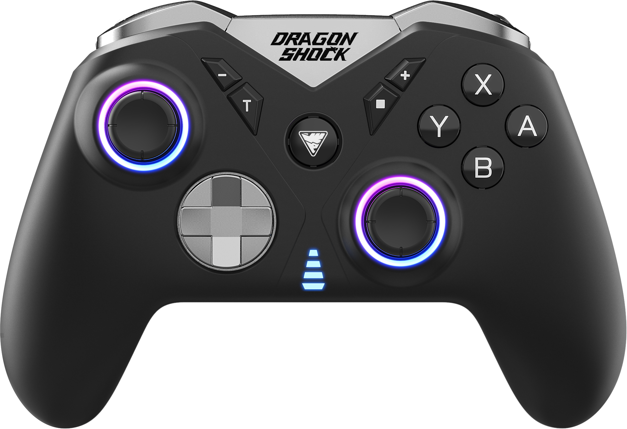 Der Dragonshock NEBULA PRO BT Wireless Controller ist Ihr ultimativer Gaming-Begleiter. Dieser funktionsreiche Controller wurde entwickelt, um Ihr Spielerlebnis auf einer Vielzahl von Plattformen zu verbessern und sicherzustellen, dass Sie immer bereit für Action sind, egal wo Sie spielen. Multiplattform-Meisterschaft - Kompatibel mit Nintendo Switch™ und der neuen Switch™ OLED. Ausserdem kompatibel mit PS3®, PC und mobilen Geräten mit Android. Kabellose Freiheit - Erleben Sie die Freiheit des kabellosen Spielens mit Bluetooth®-Konnektivität. Individuelle Beleuchtung - Gestalten Sie Ihren Controller mit leuchtenden RGB-Lichtern, die zu Ihrem Stil passen. Immersives Feedback - Spüren Sie jeden Moment mit den eingebauten Dual-Motoren, die Ihrem Spielerlebnis Tiefe verleihen. Verbesserte Steuerung - Geniessen Sie die Flexibilität von 4 programmierbaren Rücktasten für schnelle und präzise Aktionen. Verschaffen Sie sich einen Vorteil mit der Turbo-Funktion für schnelles und nahtloses Gameplay. Komfort trifft Präzision - Die Soft-Touch-Gummi-Oberfläche sorgt für einen angenehmen Griff, auch bei langen Gaming-Sessions. Präzision an Ihren Fingerspitzen: Navigieren Sie mit dem Sechs-Achsen-Sensor (Gyro) präzise durch die Spielwelt, um jede Ihrer Bewegungen zu erfassen. Langanhaltende Leistung - Mit dem 550-mAh-Akku können Sie lange Spielesessions ohne Unterbrechung geniessen. Einfaches Aufladen - Das Aufladen ist mit dem mitgelieferten 2-Meter-Typ-C-Kabel ein Kinderspiel, damit du immer spielbereit bist. Mit einem Controller, der Komfort, Anpassbarkeit und Leistung vereint, erreicht dein Gaming neue Dimensionen. Mach dich bereit, mit dem Dragonshock NEBULA PRO neue Gaming-Horizonte zu erobern.