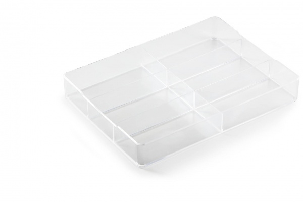 Der glasklare Schubladeneinsatz für die COFFEE POINT Catering Box eignet sich optimal für die Sortierung und Aufbewahrung von Besteck und sonstigem Zubehör von Kaffeestationen. Die stapelbare Ablage ist lebensmittelecht und leicht zu reinigen.