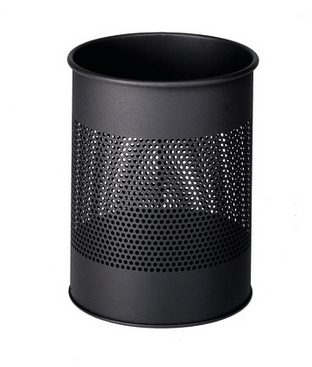 Runder Papierkorb aus Stahl mit 165 mm breitem, dekorativem Perforationsring. Mit kratzfester Epoxidharz-Beschichtung.