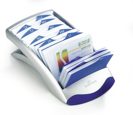 Visitenkartenkartei aus hochwertigem Kunststoff in exklusivem Design. Mit 100 Visitenkartenhüllen im Format 72 x 104 mm, beidseitig nutzbar, für 200 Visitenkarten. Alphabetisches 12-teiliges Register von A—Z. Rationelles Bestücken mit Visitenkarten durch leichtes Entnehmen und Einstecken der Visitenkartenhüllen.