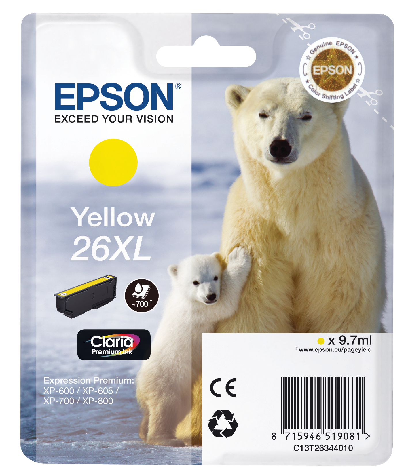 EPSON Tintenpatrone 26XL yellow T263440 XP 700/800 700 Seiten