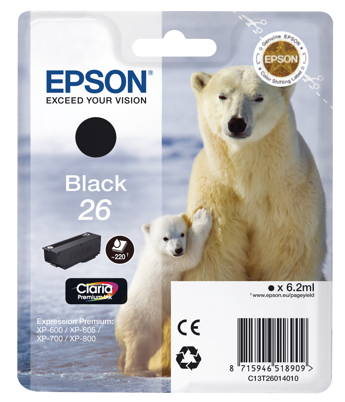 EPSON Tintenpatrone 26XL ph.schwarz T263140 XP 700/800 400 Seiten