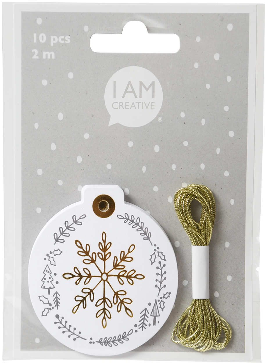 I AM CREATIVE Geschenkanhänger X-mas 4088.74 weiss mit Goldprägung 10 Stk.