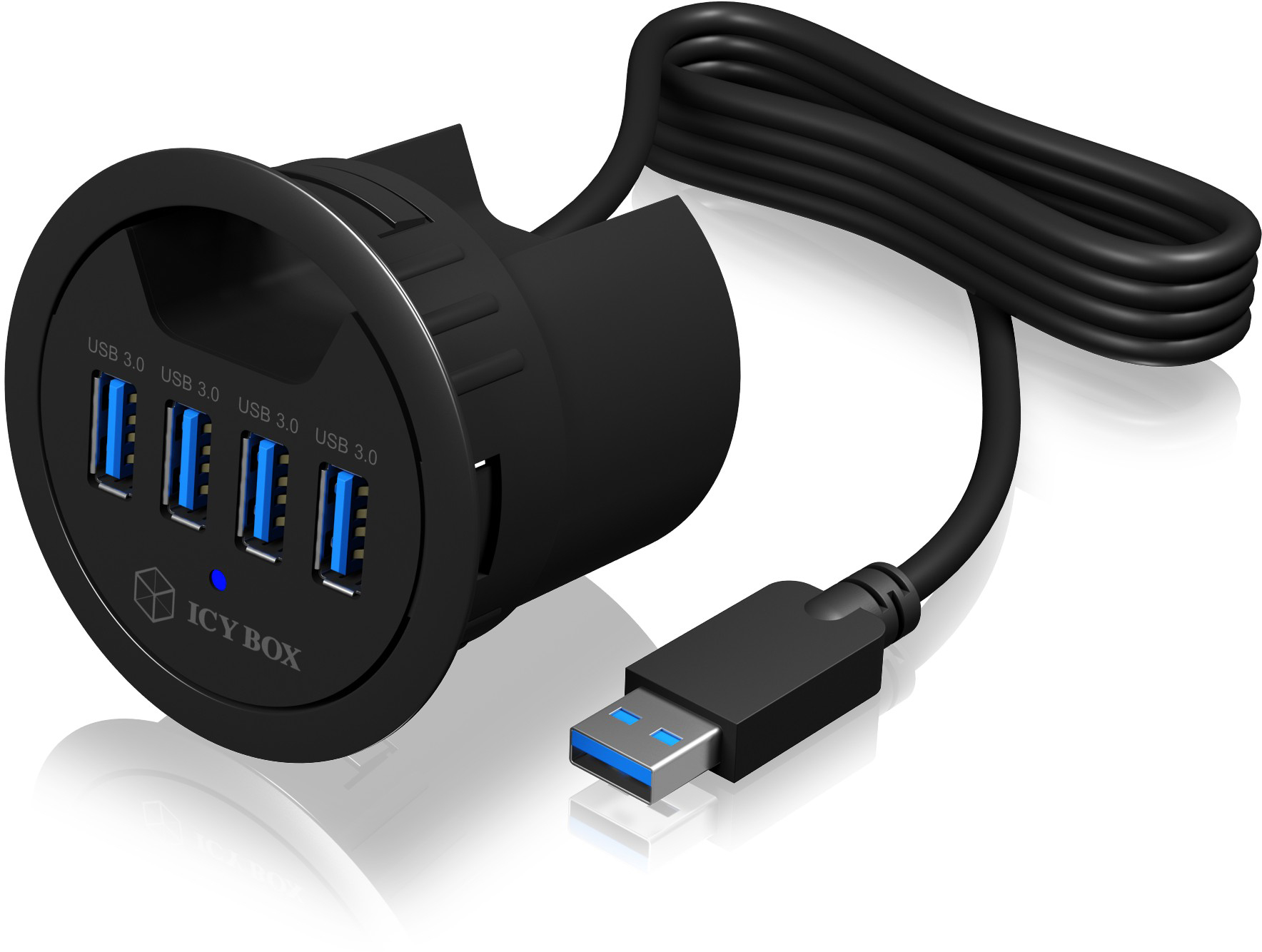 Produktinformationen "ICY BOX In-Desk USB Hub 60 mm black IB-HUB1403 4x USB 3.0 Typ A"