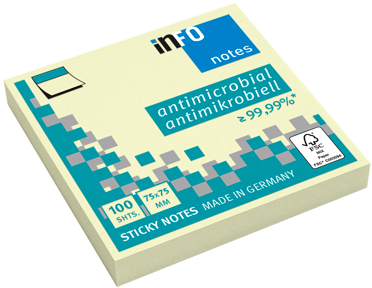INFO Haftnotizen 75x75mm 5154-01 antimikrobiell, gelb 100 Blatt