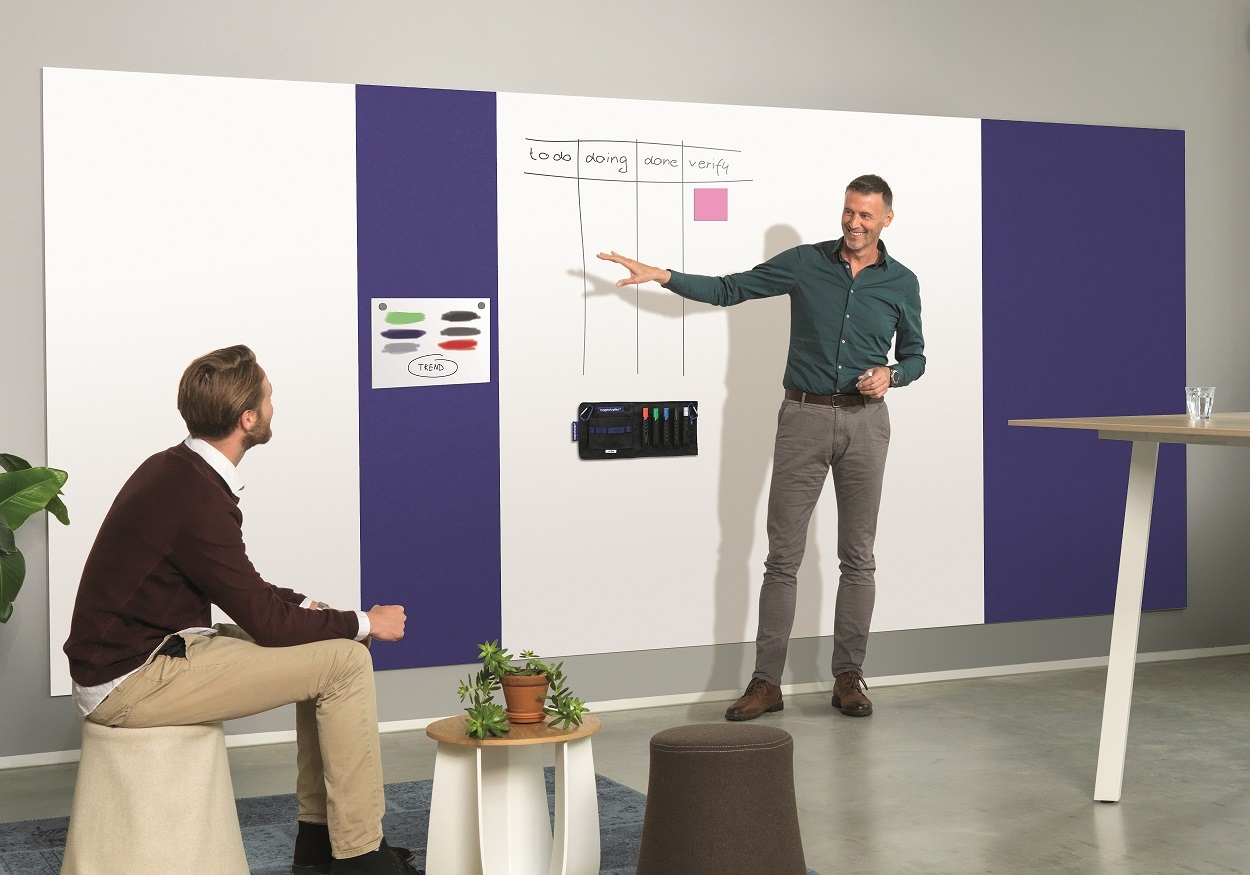 Denken Sie gross + kreativ und schaffen Sie unterschiedlich anmutende Präsentationsflächen mit Infinity Wall X und Infinity Wall X, ACOUSTICS. Ergänzen Sie Ihre Infinity Wall X-Whiteboard-Wand mit den farbigen Pinnflächen der Infinity Wall X, ACOUSTICS. Die Infinity Wall X, ACOUSTICS sorgt für eine bessere Raum-Akustik, setzt farbliche Akzente und dient als zusätzliche Präsentationsfläche in Ihrer Infinity Wall X! Spielen Sie mit den modularen Oberflächen der Infinity Wall X bei vollkommener Design- und Massfreiheit. Kreieren Sie Ihre Schreib- und Pinnflächen von Wand zu Wand, vom Boden bis zur Decke und schaffen Ihre individuelle, unendlich erweiterbare + akustikoptimierte Raum-Atmosphäre.