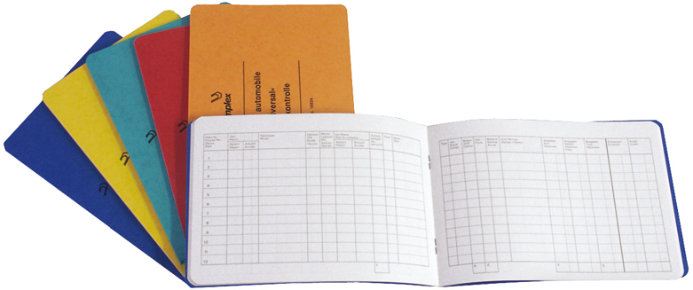Die Autobetriebskontrolle mit einem Deckel aus farbigem Pressspan ist zweisprachig (D/F) und hilft Ihnen die Übersicht zu behalten.