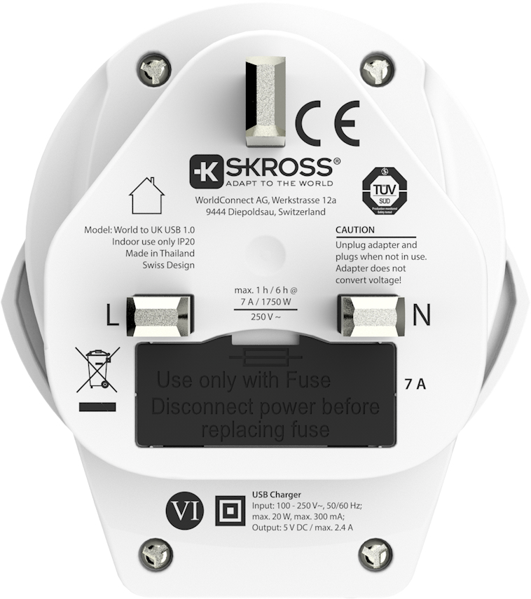 SKROSS Country Travel Adapter 1.500267 World to UK with USB